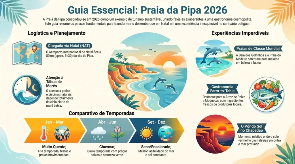 Muitas pessoas planejam a viagem e buscam saber: Qual a melhor época para ir a Pipa? Se você deseja evitar aglomerações e preços elevados, evite o período entre dezembro e o Carnaval. Por outro lado, os meses de setembro a novembro oferecem o equilíbrio perfeito entre calor e calmaria total. Além disso, as águas permanecem cristalinas e mornas, favorecendo o mergulho e a observação da vida marinha local.