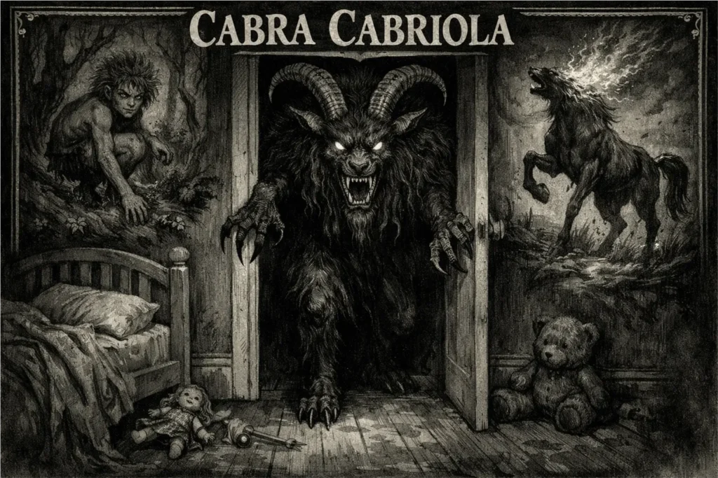 Quando a noite cai, a lenda da Cabra Cabriola ganha vida nos quintais e telhados das casas rurais. Além disso, ela possui uma agilidade incrível para saltar muros altos e entrar por janelas esquecidas abertas. Consequentemente, nenhum lugar parece totalmente seguro quando o vento sopra forte e traz o cheiro de enxofre. Por esse motivo, as famílias costumavam benzer as entradas das residências para afastar o mal.